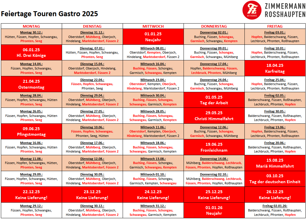 Fällt Ihr Liefertag auf einen Feiertag, somit fällt diese Lieferung aus und wird nicht verschoben.